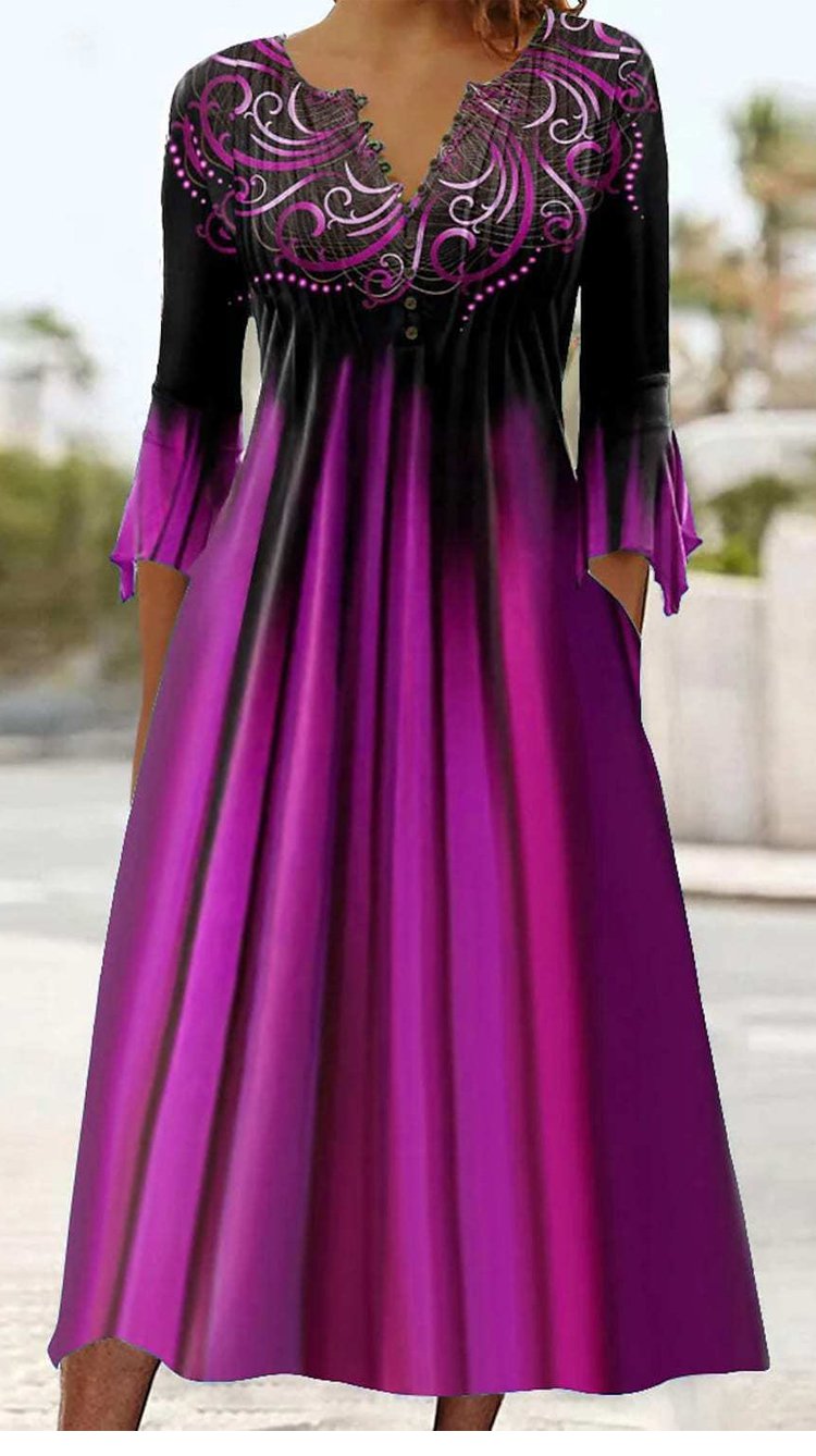 Sukienka z V-dekoltem i nadrukiem dla kobiet